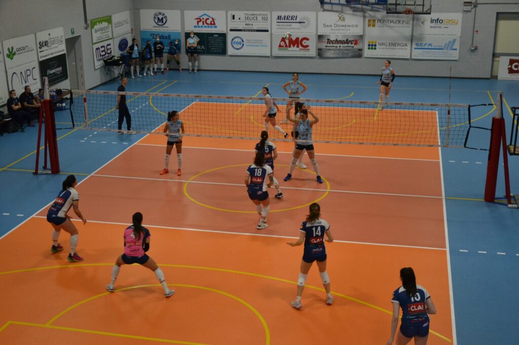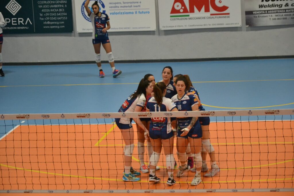 Tutta la squadra ritrova fiducia pallone dopo pallone e di conseguenza il livello della prestazione sale di tono. Le ospiti servono molto male e spesso subiscono il muro imolese, fondamentale nel quale eccelle Migliorini. La svolta arriva nel secondo parziale quando Ostiano, in vantaggio per 15-10 e con la partita in mano, si fa raggiungere e superare dalle ragazze di Ghiselli, che da quel momento in poi cambiano marcia e lasciano solo le briciole alle avversarie. La Clai vince quindi senza eccessivi patemi anche i successivi due set, condotti con autorità dall’inizio alla fine, e porta a casa 3 punti davvero fondamentali per consolidare la propria posizione in classifica. Sabato prossimo alle 21 trasferta sul campo del Certosa Volley, fanalino di coda del girone, per un impegno che sulla carta sembrerebbe più che abbordabile. Vietato però abbassare la guardia, come Garlasco insegna.