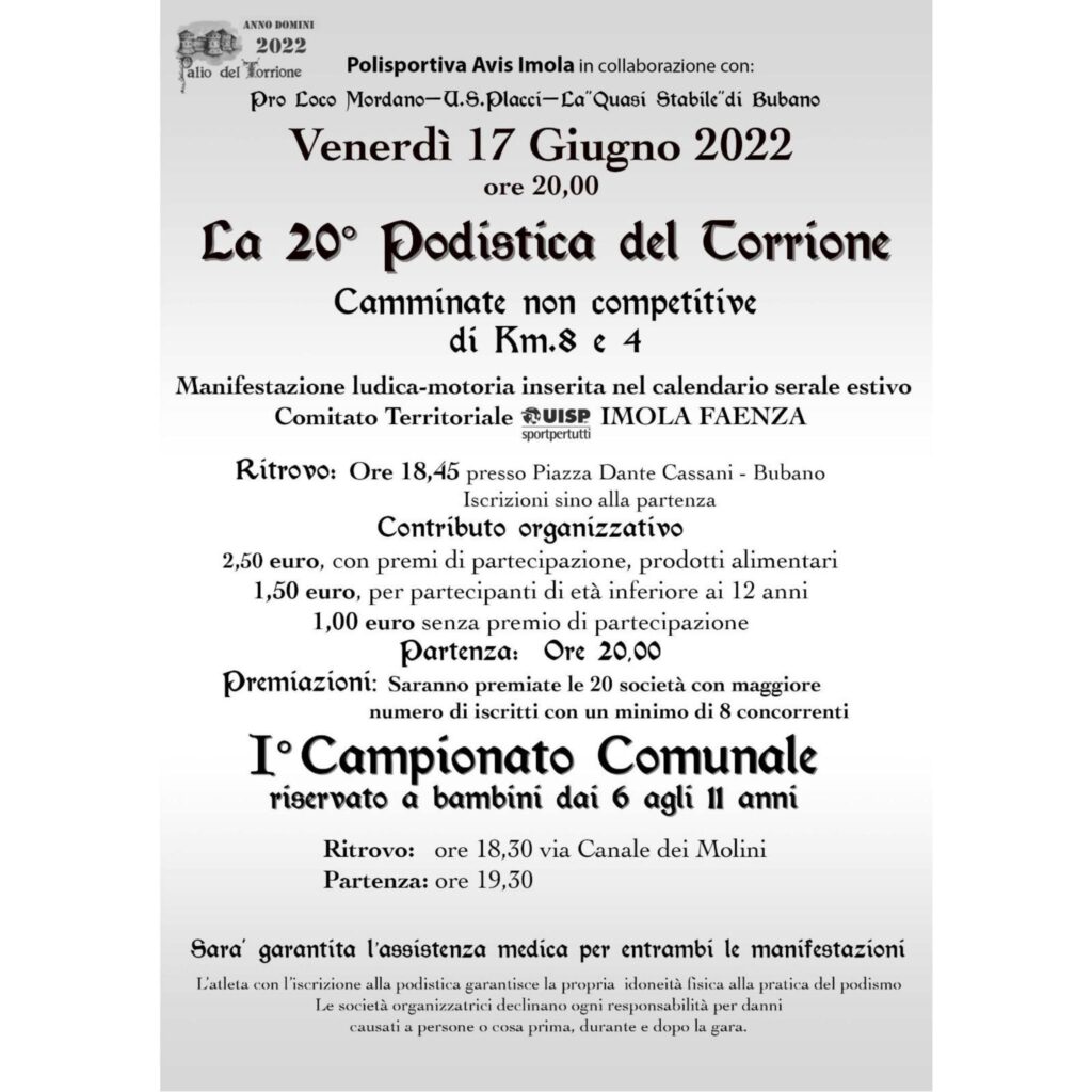 L’atmosfera a Bubano è frizzante e l’attesa per l’evento traspare tra la gente che tornerà ad “appropriarsi” del centro del paese, potendo scegliere tra tantissime opportunità: rievocazioni storiche, eventi culturali ed enogastronomici, gare sportive, momenti musicali e spettacoli di teatro e non solo. Ce ne sarà per tutti i gusti e le età.